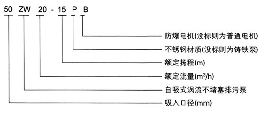 ■ ZW型自吸式無堵塞排污泵型號意義: