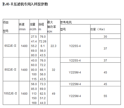 ZJE-Ⅱ專用泵是一種性能特殊的雜質(zhì)泵。近年來,被業(yè)內(nèi)人士稱之為“壓濾機(jī)專用入料加壓泵”。該泵由后側(cè)面吸入漿液,簡(jiǎn)單的填料密封無泄漏,更重要的是其流量、揚(yáng)程曲線很陡,非常適合一些特殊的工況。