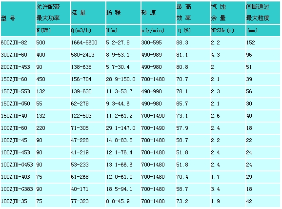 ZJD渣漿泵的性能參數(shù)