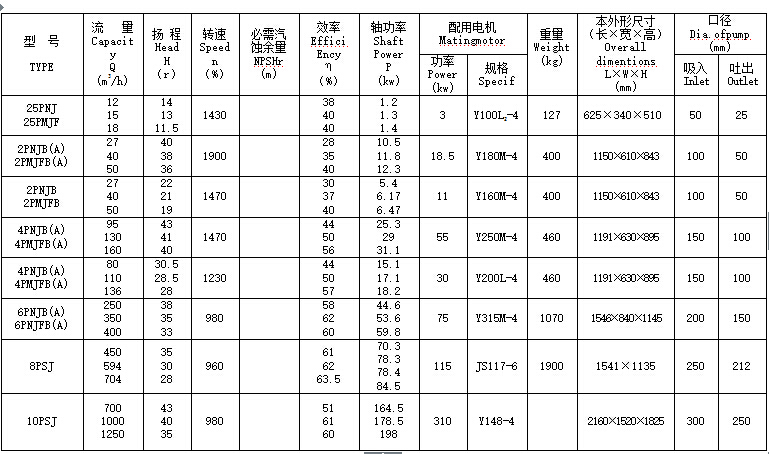 聚盛泵業(yè)PNJB型襯膠泥漿泵參數(shù)