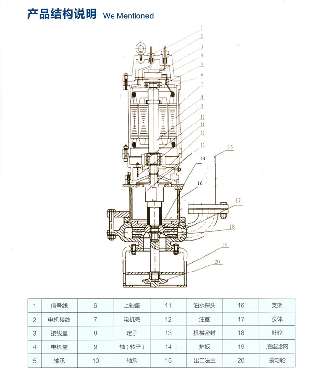 該系列產(chǎn)品是吸收國(guó)外先進(jìn)技術(shù)設(shè)計(jì)制造。水泵除主葉輪外在底部增加一套攪拌葉輪,能將沉淀的淤渣噴擊成湍流,是水泵在沒有輔助裝置的情況下能夠?qū)崿F(xiàn)高濃度輸送。獨(dú)特的密封裝置的運(yùn)行可靠性,大大延長(zhǎng)了其使用壽命。電極采用過熱保護(hù),根據(jù)用戶的要求可增加近水檢測(cè)等多種保護(hù)裝置,能在惡劣工況條件下長(zhǎng)期安全運(yùn)行。